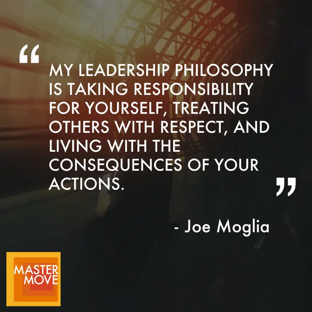 >> Joe Moglia: Yeah, Craig, there are. I think my mom and dad were very, very different. And my leadership philosophy is, we call it bam, but it’s taking responsibility for yourself, standing on two feet. Take responsibility for yourself. Treat us with the respect, live with the kind consequence of your actions. Now, dad wasn’t a great bam guy. He was a very hard worker and he cared about his family and he loved us and all those things. And he was an excellent fruit vegetable guy. But, kind of nothing was ever really his fault. Yeah, like maybe three men work for us and they get in at 6 o’ clock in the morning. They were 8 o’, clock, 8 o’ clock at night, and they didn’t get paid much. And My father worked 14 hours a day. When I was 12, I started working 12 hours a day. We all want to feel appreciated for the job we do. Dad didn’t necessarily do that. Anything that happened that was negative, it was always somebody else’s fault. So later on, over the span of. Span of my career, I think I got m. My work ethic very, very much from my father. But I think as a leader, I learned a lot about what not to do and how to treat other people because of what I learned from my father as a teenager.