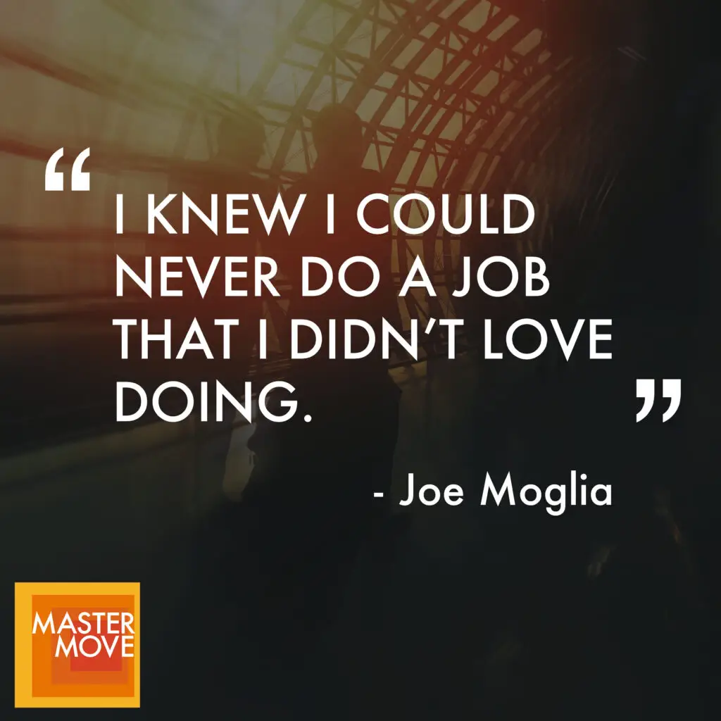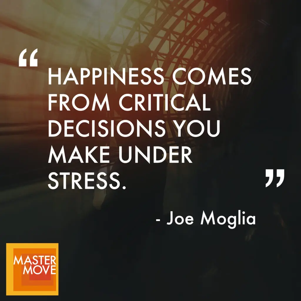 >> Joe Moglia: Well, it wasn’t necessarily anybody afford them, but my mom was the opposite of my dad. She was always smiling. by the way, she never finished 10th grade and she was born and raised in Ireland. She came here to marry my dad. but my mom’s attitude was always very positive. She’s always unconditionally supportive and loving. I was the oldest of five kids. We grew up in a gang neighborhood in New York City. Seven of us lived in a two bedroom, one bathroom apartment. I was part of a gang from the time I was 10. So as you kind of fast forward and you think these things through, nice to be able to say, okay, take responsibility for yourself. But I think at the end of the day, the only thing I want from my loved ones and people I care about and the only thing I really want for myself, I want to be happy. That’s what you really, really want. I’m not worried so much about the job. I want to be happy. And I don’t believe, and I believe happiness comes from decisions, critical decisions that you make under stress. If it’s not stressful, they’re not important decisions. So in order to get those decision to answer, to get those decisions right, you got to know who you are. And the greater, greater an understanding you have of yourself, the greater your peace of mind. You increase the probability that you’re going to make better decisions under stress. The better you do there, the more, the more you’re going to feel self fulfilled, the more you’re going to feel happy and you kind of accomplish what you want to be able to accomplish. But if you don’t know who you are, you’re not going to make those decisions. And I think most people think they know who they are, but they don’t.